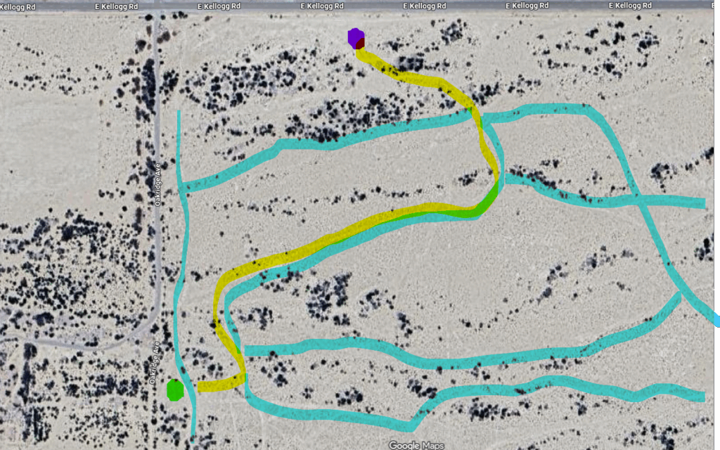 The Yellow line shows the “flattest route” in my opinion. Please dont just barrel through because i said so, arrive during the day, scout trails if you feel you need to.