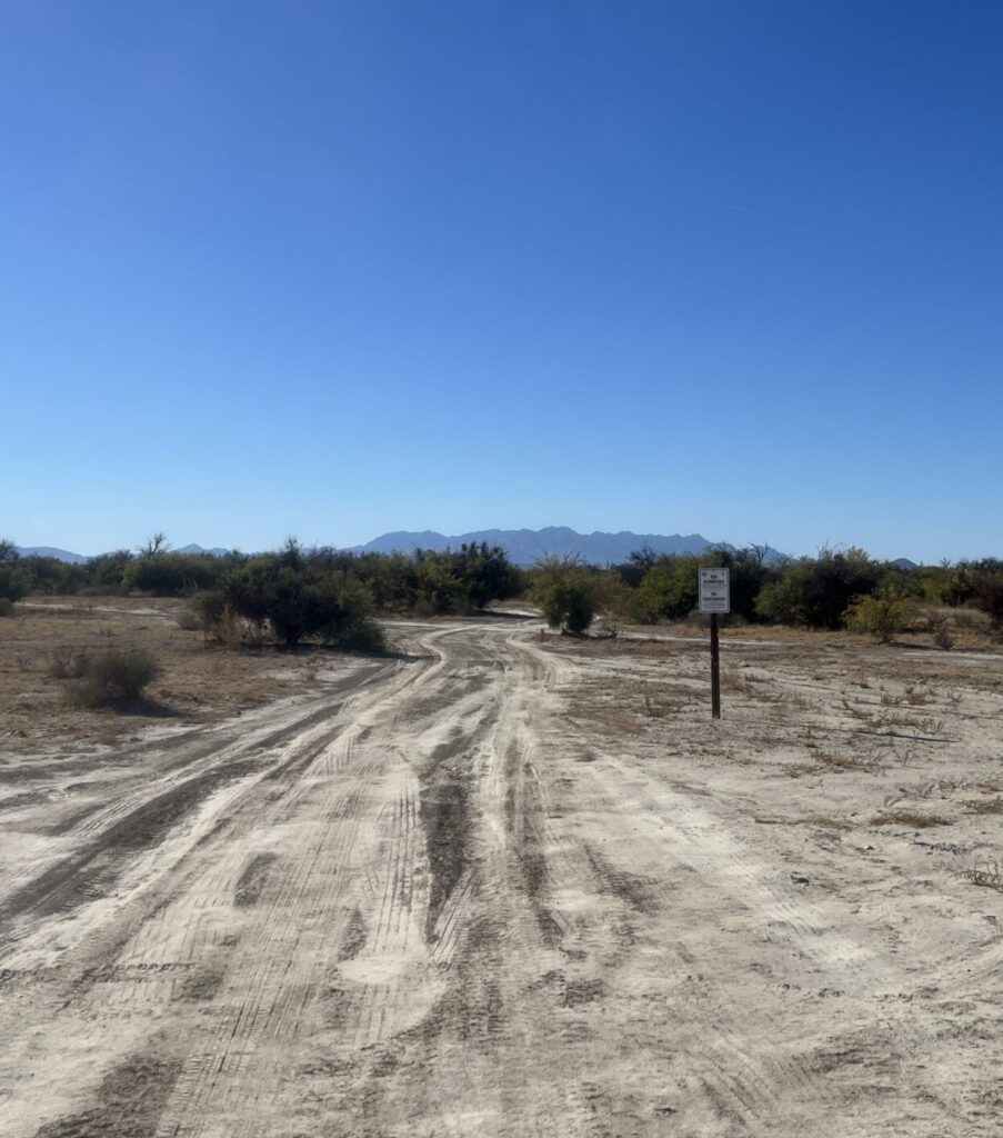 This is an all dirt trail leading between large bushes. Some of the bushes are closer than others. The farther in you go the more large bushes, which equals shade. It is soft in some areas, be sure to test the ground if you feel it may be to soft. There are plenty of areas to park on hard ground.